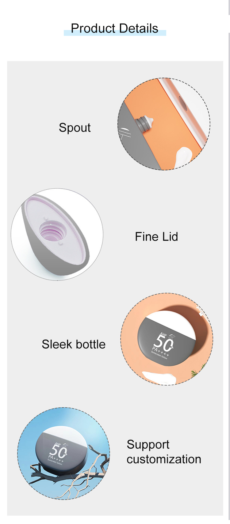 Whether you are heading to the beach for some sun protection or simply freshening up with deodorant during your day, this 50g gray circular bottle is a functional and stylish choice that meets your daily care needs. Invest in this reliable packaging solution to keep your essential products organized and easily accessible in style.
